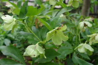 暮れから春にかけて咲く。 クリスマスの頃バラに似た花を咲かせるので この名がついたと言われている。 はなびらは萼片。種によって 誤って食べると 嘔吐、下痢、けいれん、精神錯乱、呼吸麻痺、心停止を引き起こすとある。染めた時知らなかった。染め色は ほとんど染まらないと言っていい。葉っぱが大きくてガバガバしているので濃く染まると思った が 以外な結果。 5月のクリスマスローズ